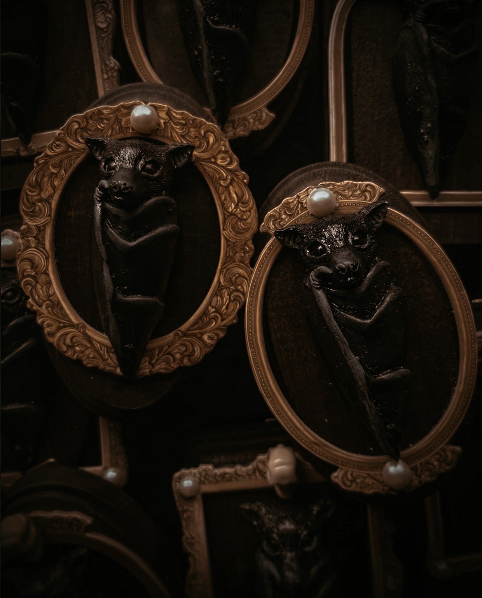 These baby bats are all made unique and different , each design and sculpt varrying ( the bat will always be black )